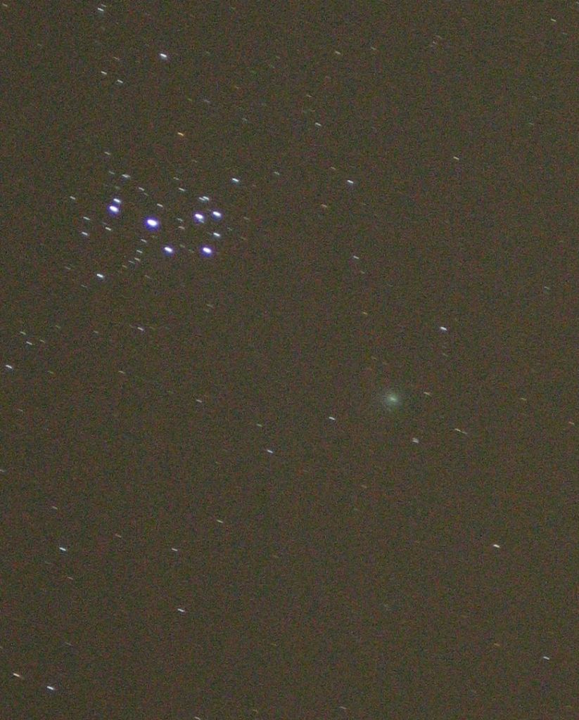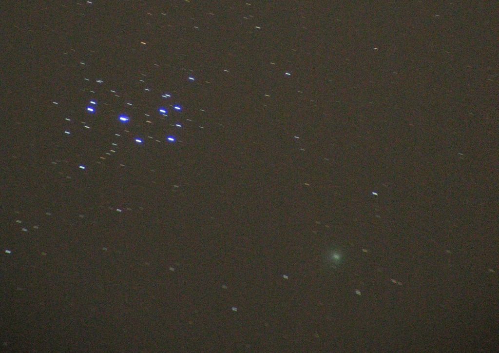 Hetkenkuluttua revontulet katosivat ja komeetta oli selkeämmin näkyvissä.